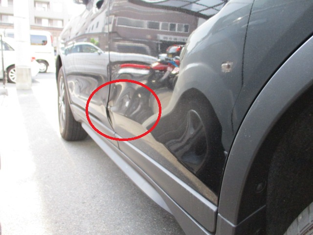 狭い道で左折時に日産エクストレイルの左側を固いポールに擦ってしまったそうです。