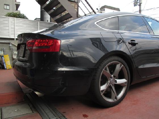 アウディ A5 リアフェンダーとバンパーキズ修理。